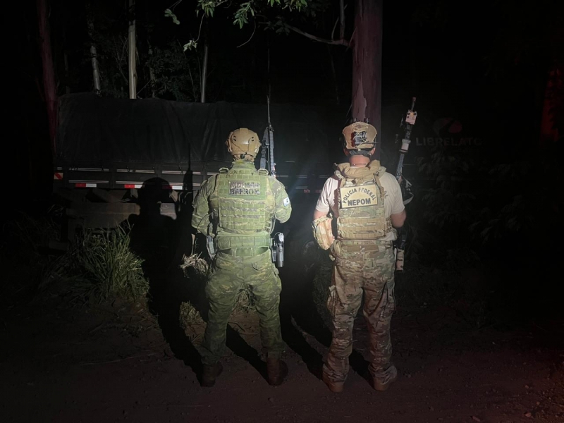 Durante patrulhamento na área, os policiais avistaram um caminhão em atitude suspeita e deram ordem de parada. O motorista não obedeceu e fugiu, abandonando o veículo em uma plantação de eucaliptos.