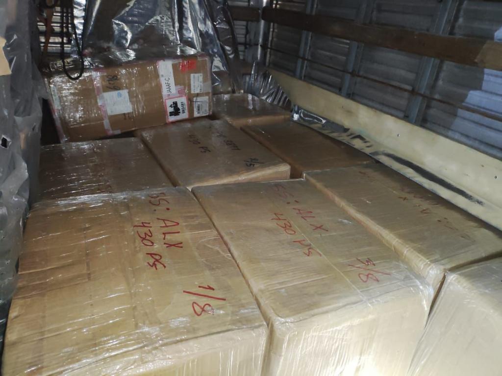O contrabando estava escondido sob uma carga de utilidades domésticas, no interior de um caminhão baú com placas de Nova Santa Rosa/PR.