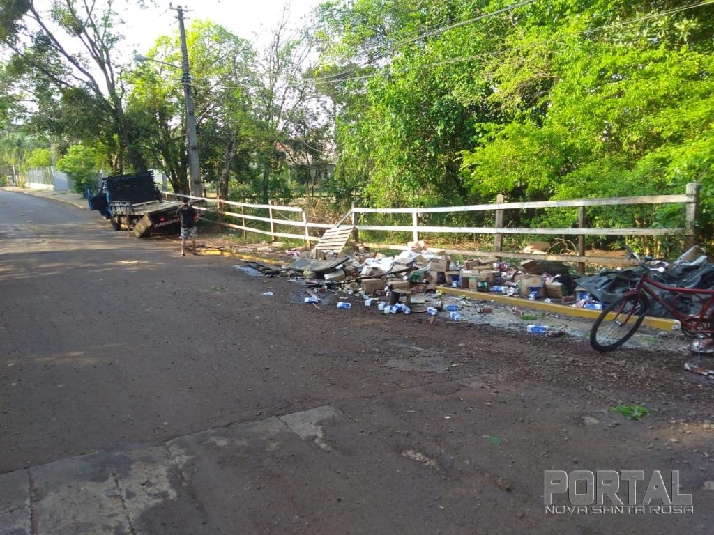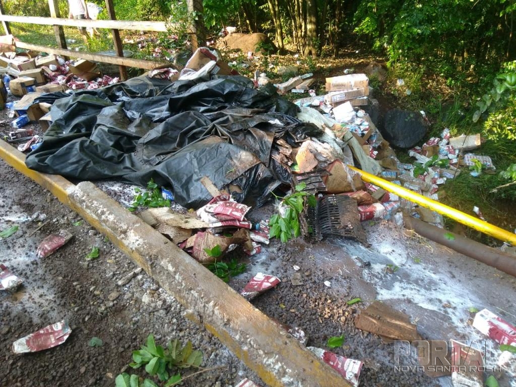O Caminhão Volkswagem, com placas de Mal Rondon, estava carregado com caixas de leite longa vida: toda a carga ficou esparramada na via, além de algumas delas que caíram no Rio Toledo.