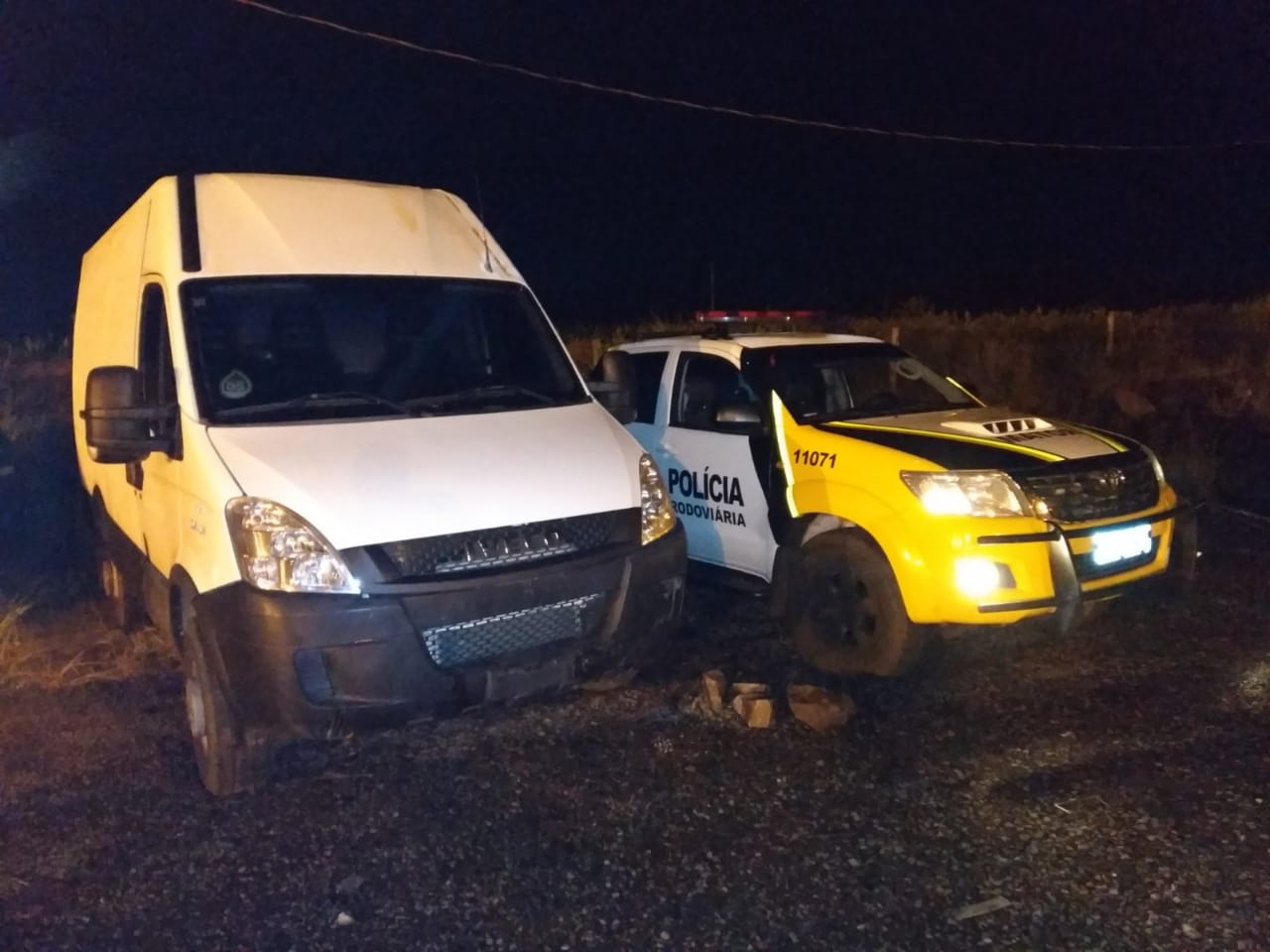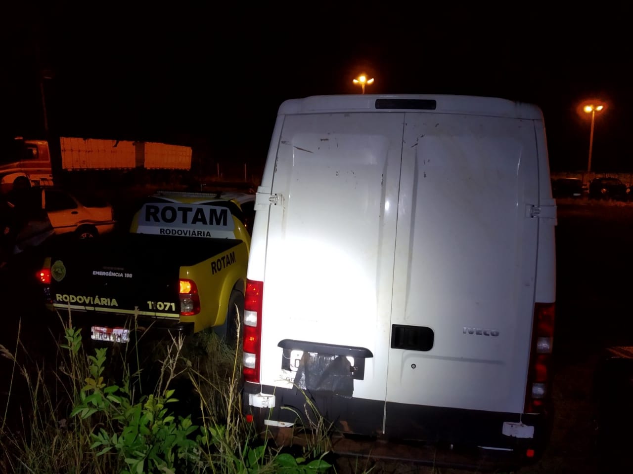 O Iveco estava sem carga, contudo, no painel foi localizado um rádio comunicador, o que dá indícios de que o veículo era utilizado no transporte de ilícitos.