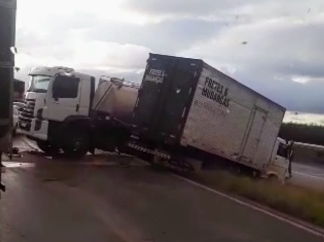 Conforme a PRF, não houve feridos. O acidente ocorreu no trecho onde está sendo feita a duplicação da rodovia e o caminhão de leite teria feito uma manobra para não colidir na traseira de outro caminhão, vindo a atingir o caminhão baú que seguia no sentido contrário.