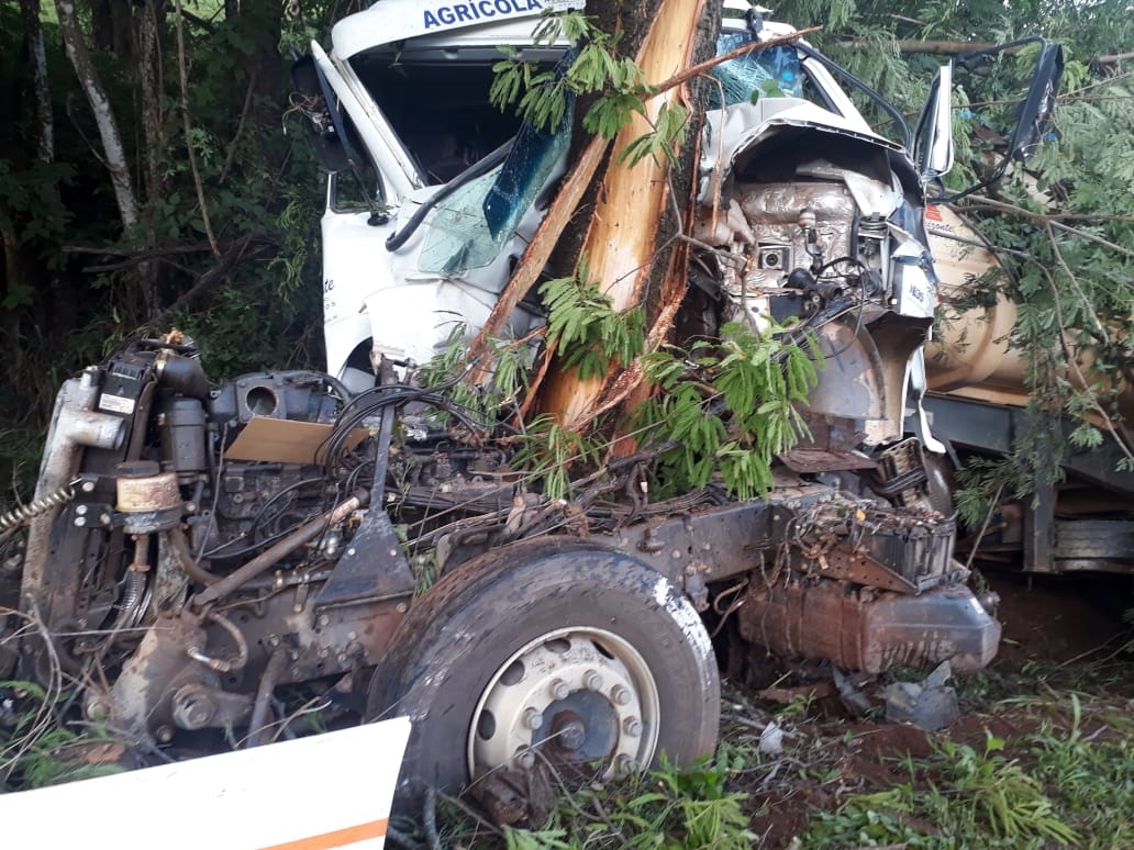 Ao pressentir que a colisão frontal iria acontecer, o motorista do segundo caminhão da Agrícola Horizonte, Sigbert Weidlich, de 48 anos, realizou uma manobra brusca e colidiu contra uma árvore.
