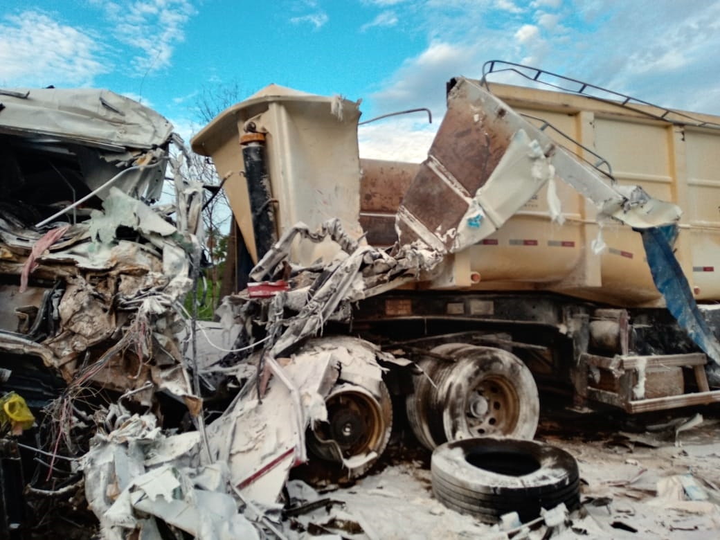 A carreta conduzida por Darson Eliberto Schmen, de 55 anos, colidiu contra outro caminhão que trafegava em sentido contrário e os dois motoristas morreram prensados entre as ferragens.