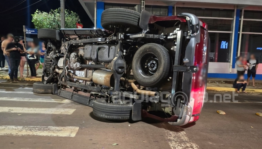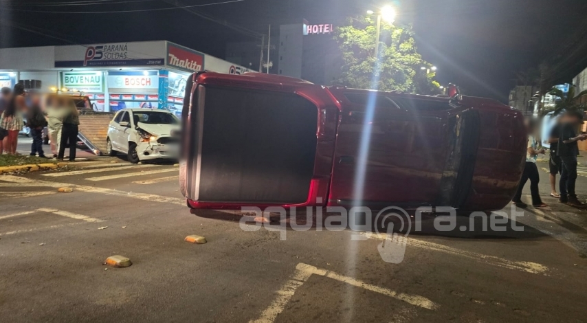 Caminhonete capota após colisão na avenida Rio Grande do Sul em Marechal Rondon