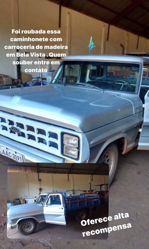 No sábado (19) houve o furto de uma Ford/F1000 e diversos produtos agrícolas em uma propriedade rural no distrito de Bela Vista.