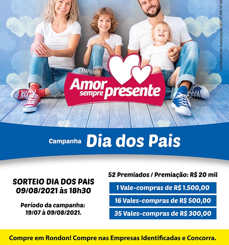 Para celebrar o Dia dos Pais, comemorado em 08 de agosto, a Associação Comercial e Empresarial de Marechal Cândido Rondon (Acimacar) iniciou ontem a campanha promocional “Amor Sempre Presente – Dia dos Pais”.