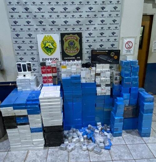 Durante a ação, os agentes abordaram um caminhão e, após vistoria veicular, localizaram 14 volumes contendo celulares, tablets e notebooks da marca MacBook. No total, foram apreendidos mais de 600 dispositivos eletrônicos, todos sem a devida documentação aduaneira.