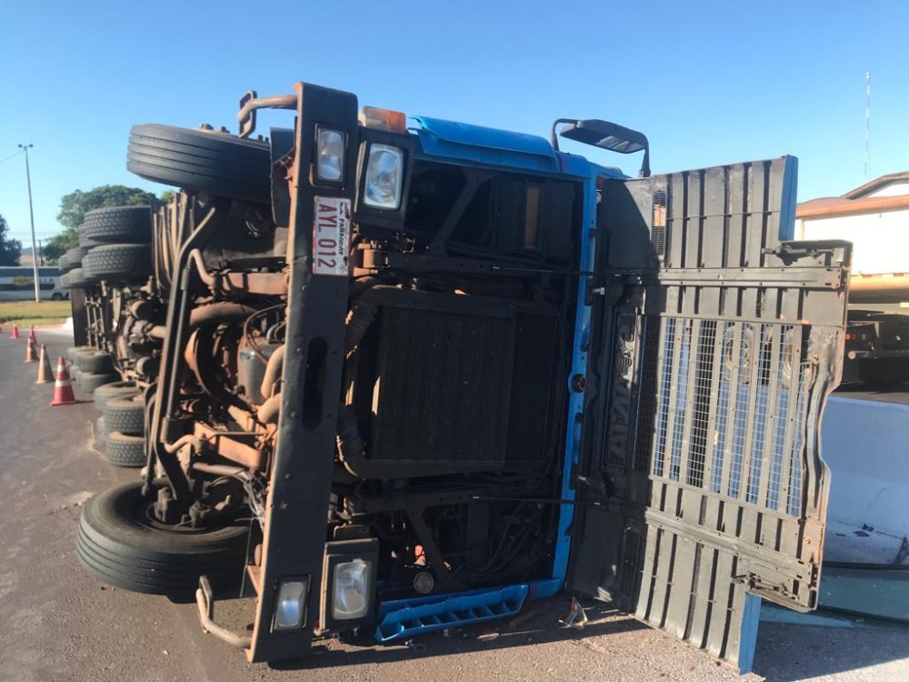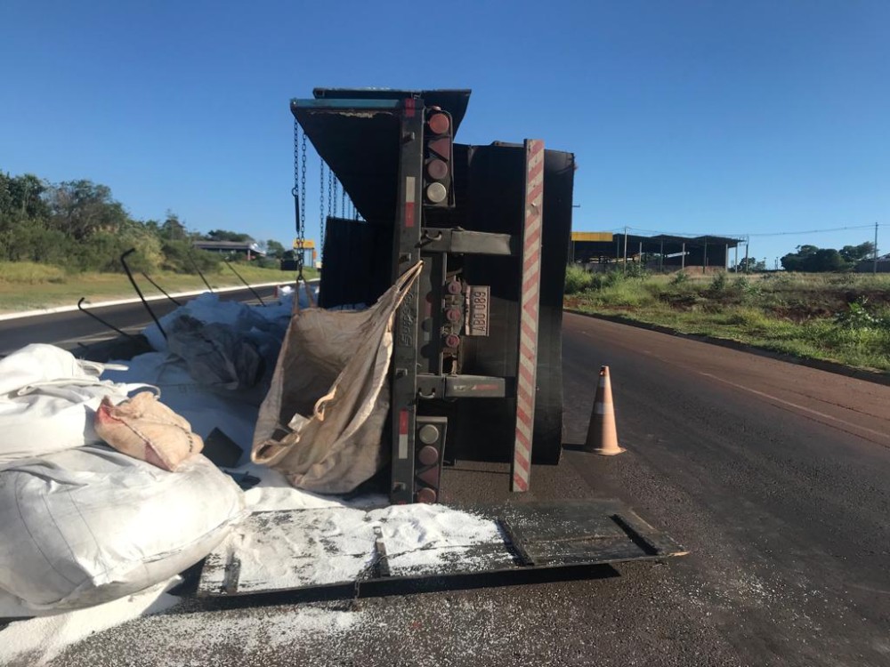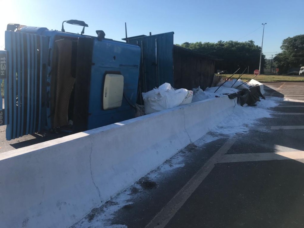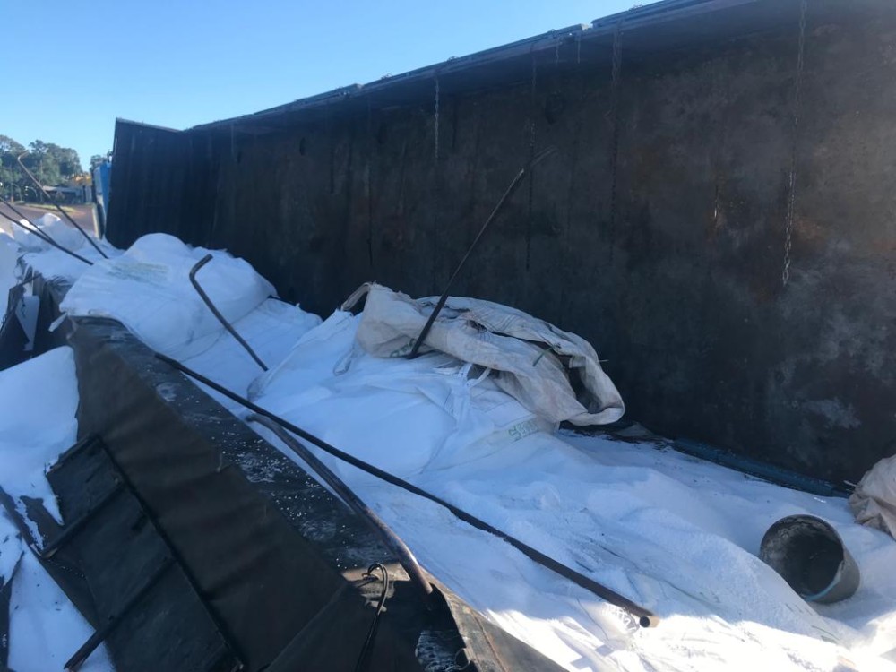 Os dois ocupavam uma carreta Scânia carregada com calcário, a qual tombou ao passar pelo trevo do Portal.