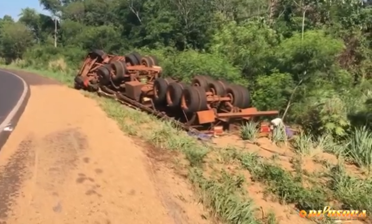 Carreta carregada com trigo capota na BR-163 em Marechal Rondon: condutor ferido foi transferido para Toledo