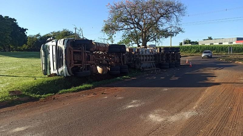 Uma carreta tombou no início da manhã desta quinta-feira (17), na saída de Toledo com destino ao município de Palotina. A ocorrência envolveu uma carreta da marca DAF, com placas Mercosul, utilizada para o transporte de ração.