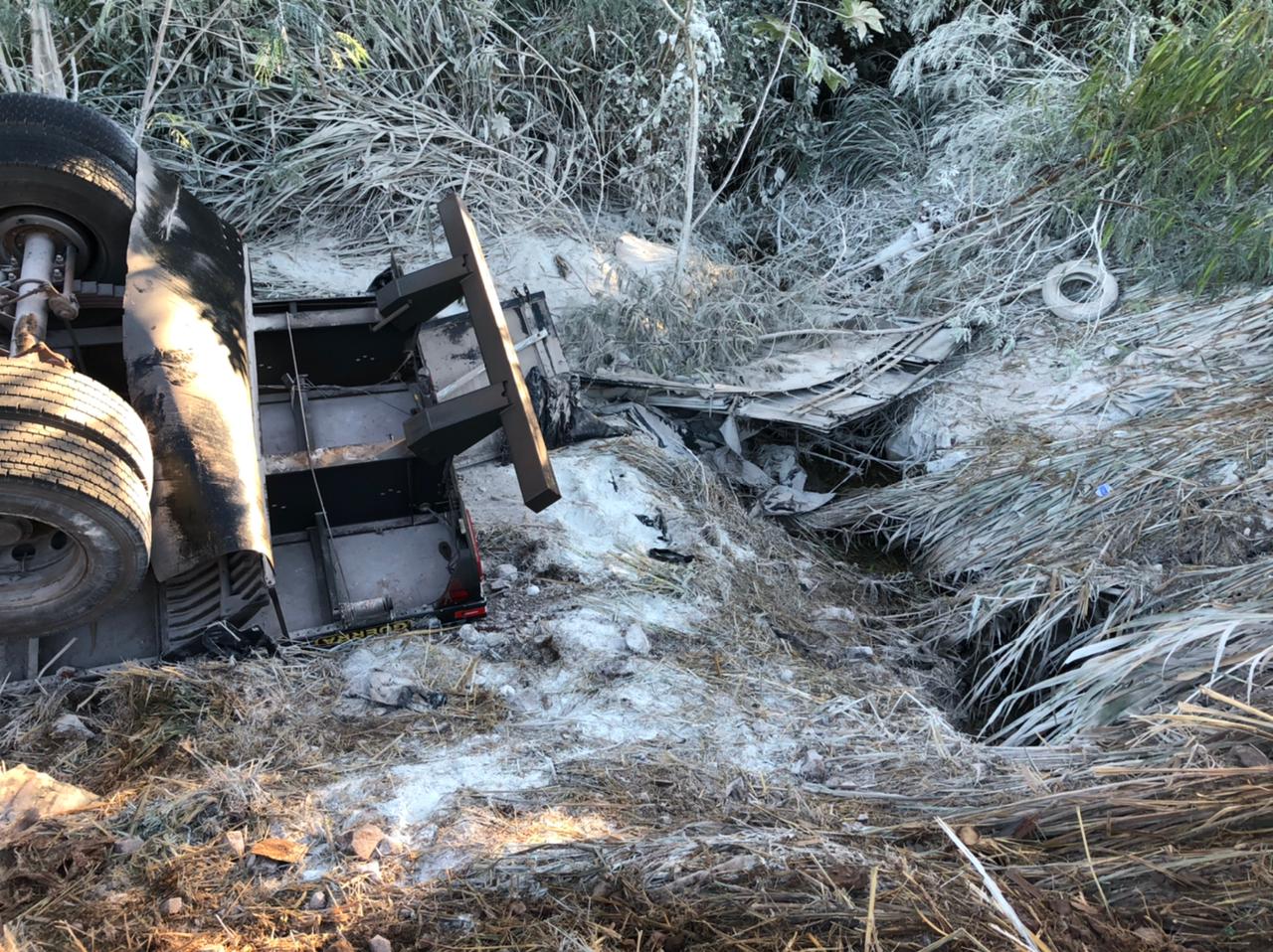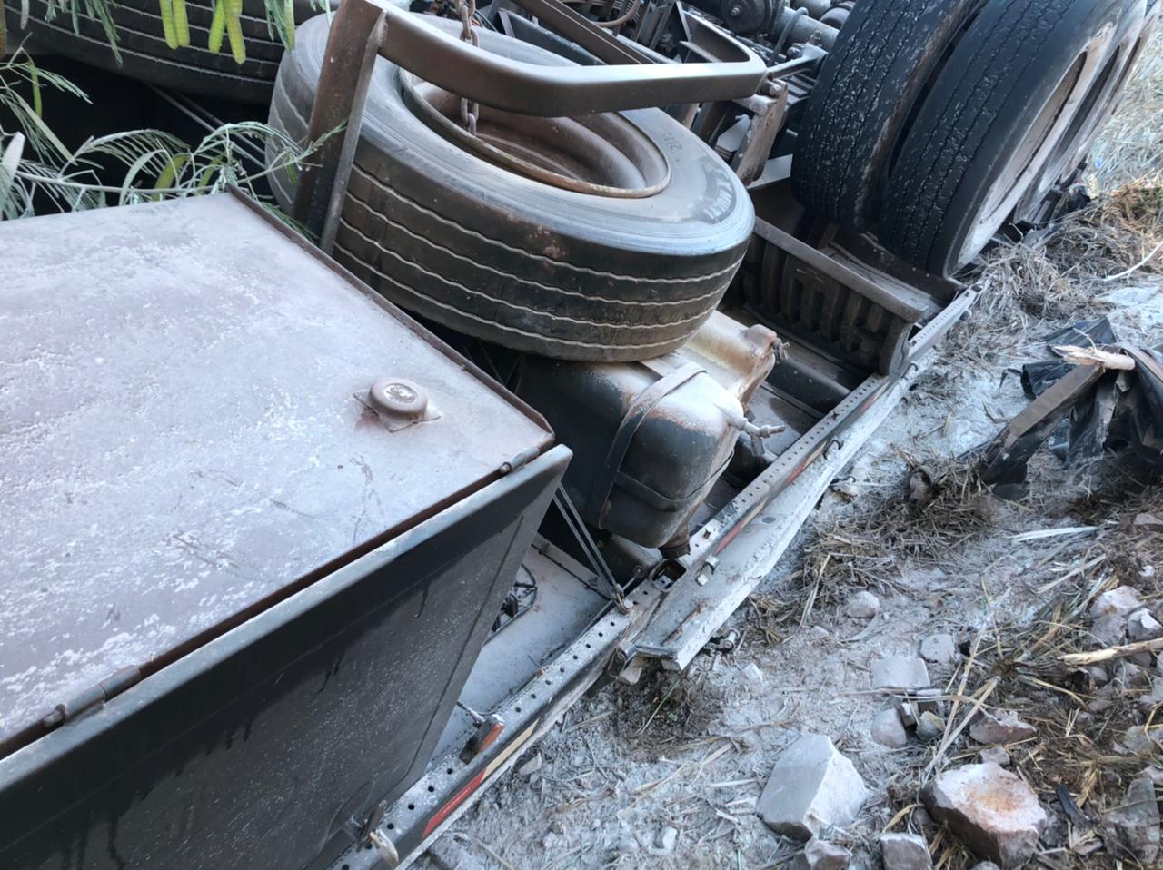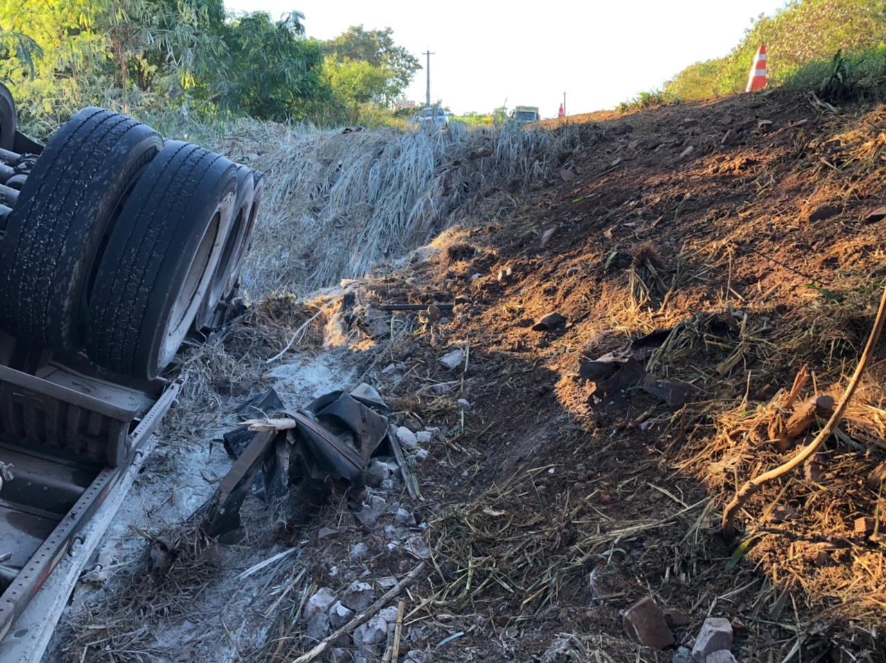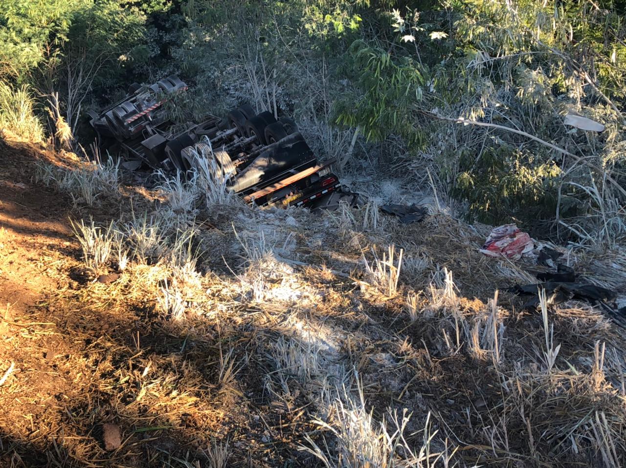 Carreta do Paraguai tomba na BR-163 saída de Marechal Rondon: condutor ficou ferido