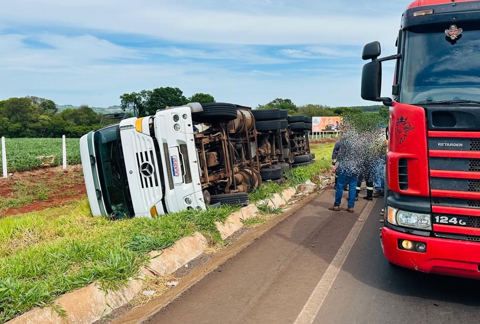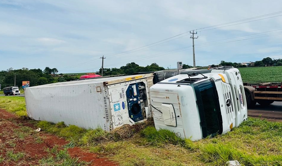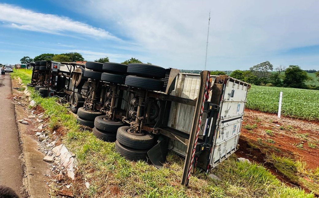 Carreta tomba na BR 163 em Marechal Rondon