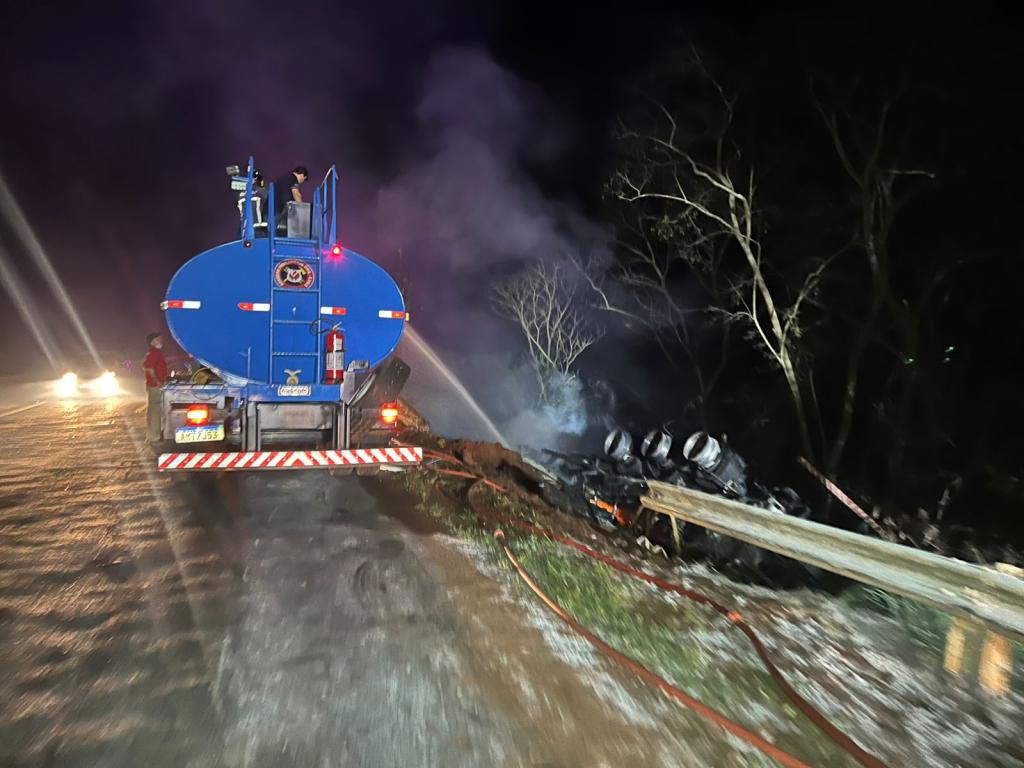 Na sequência, o veículo pegou fogo e o condutor não conseguiu sair da cabine, morrendo carbonizado. Ele estava sozinho no veículo.