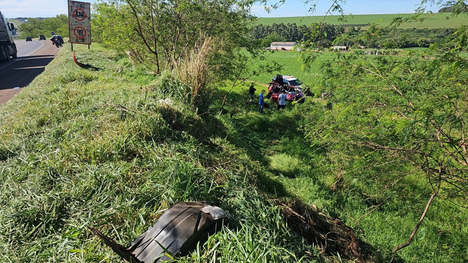 Carro capota e cai em ribanceira após colisão na BR-163, em Toledo; condutora ficou ferida