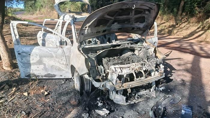 Carro é destruído por incêndio na PR-317, próximo pedreira municipal em Toledo