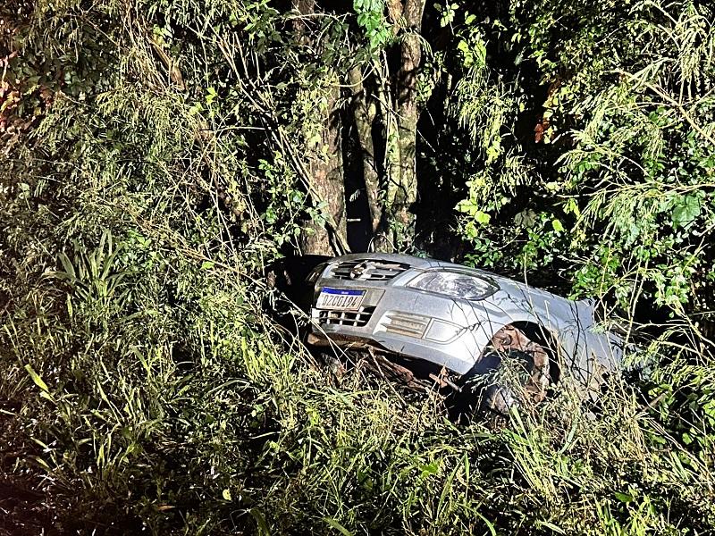Carro sai da pista e atinge árvore na PR-495, em Marechal Cândido Rondon