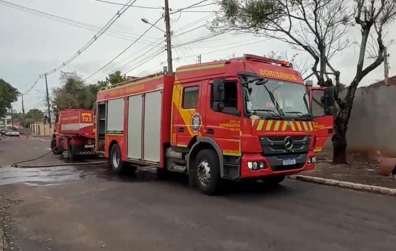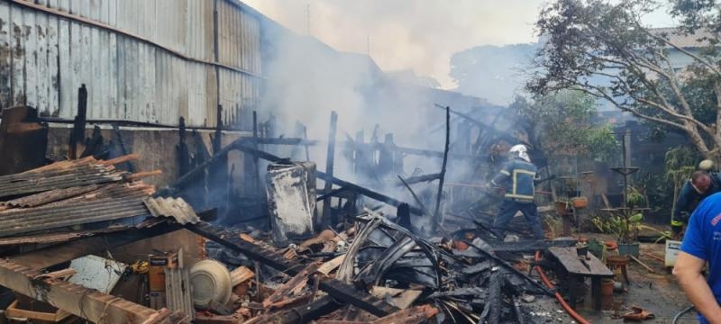Casa é destruída por incêndio no centro de Guaíra