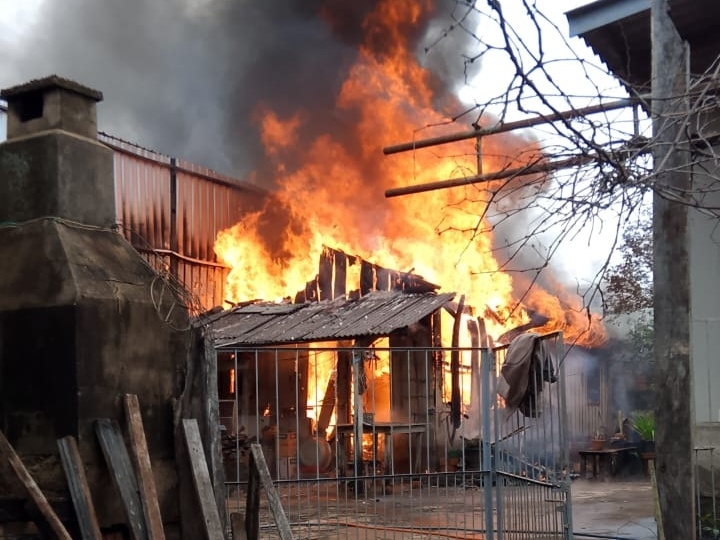 As chamas de grandes proporções consumiram completamente a casa. Rapidamente, o Corpo de Bombeiros foi acionado para combater o fogo.