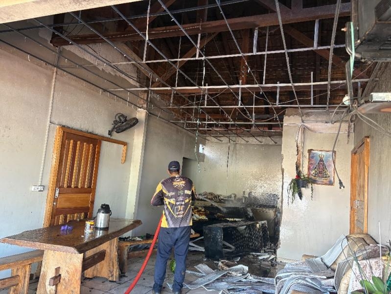 Casa pega fogo em Mercedes e rápida ação da prefeitura impede destruição do imóvel
