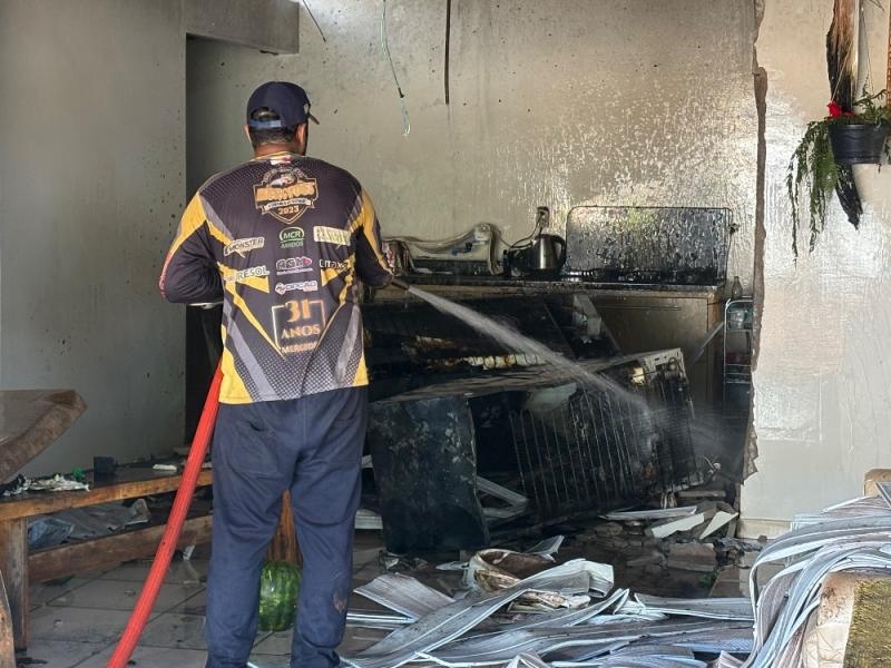 O incêndio causou danos no foro da garagem e da cozinha que ficam no mesmo ambiente. Móveis e eletrodomésticos também foram danificados.
