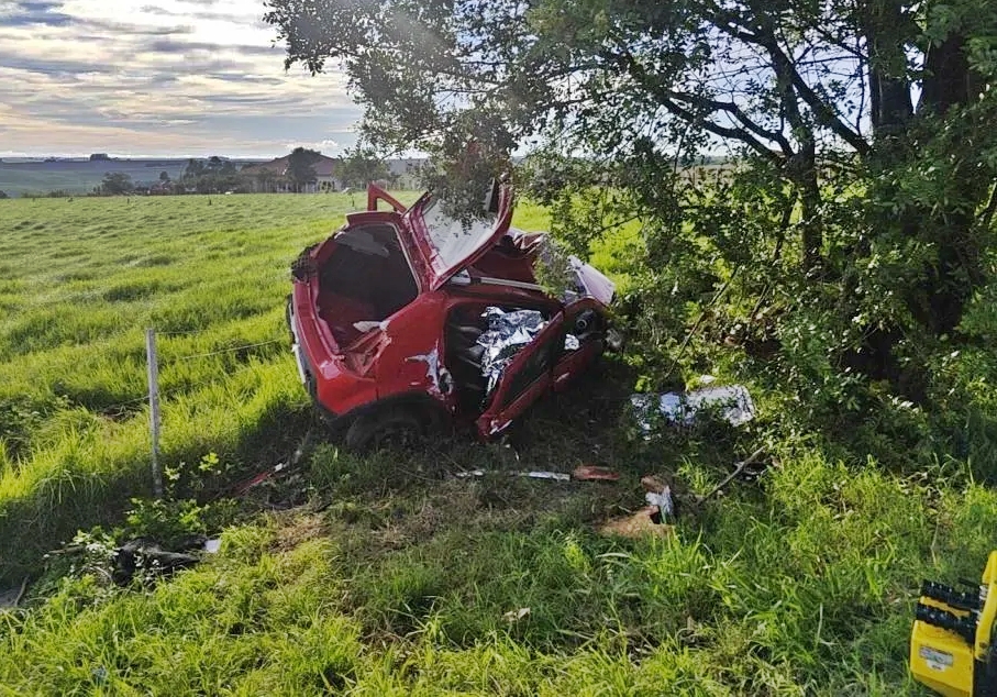 Segundo a Policia Rodoviária Estadual o veiculo trafegava no sentido Céu Azul a Vera Cruz do Oeste, quando o condutor perdeu o controle, saiu da pista e checou-se contra uma árvore a margem direita da rodovia.