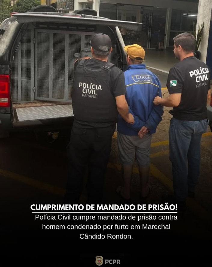 Policiais da a 47ª Delegacia Regional de Polícia de Marechal Cândido Rondon deram cumprimento a mandado de prisão em desfavor de um homem de 40 anos, condenado a 4 anos e 5 meses de reclusão pela prática do crime de furto.
