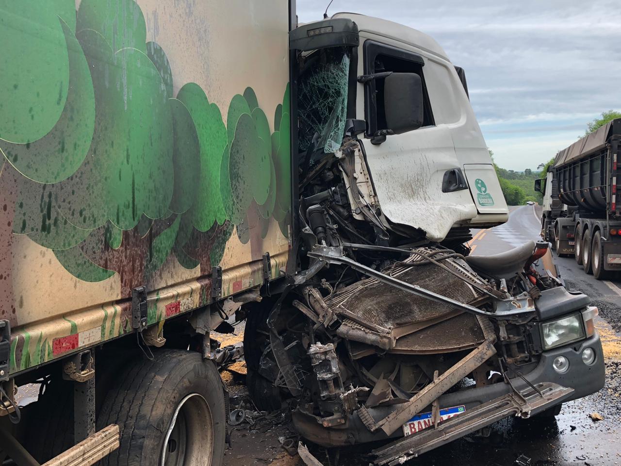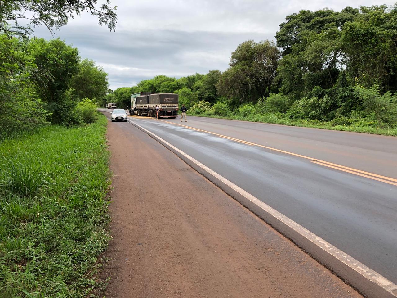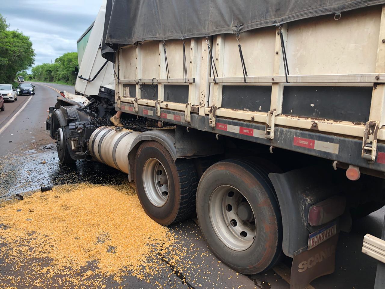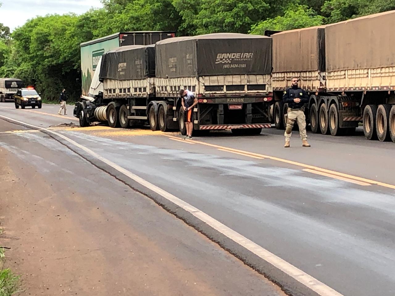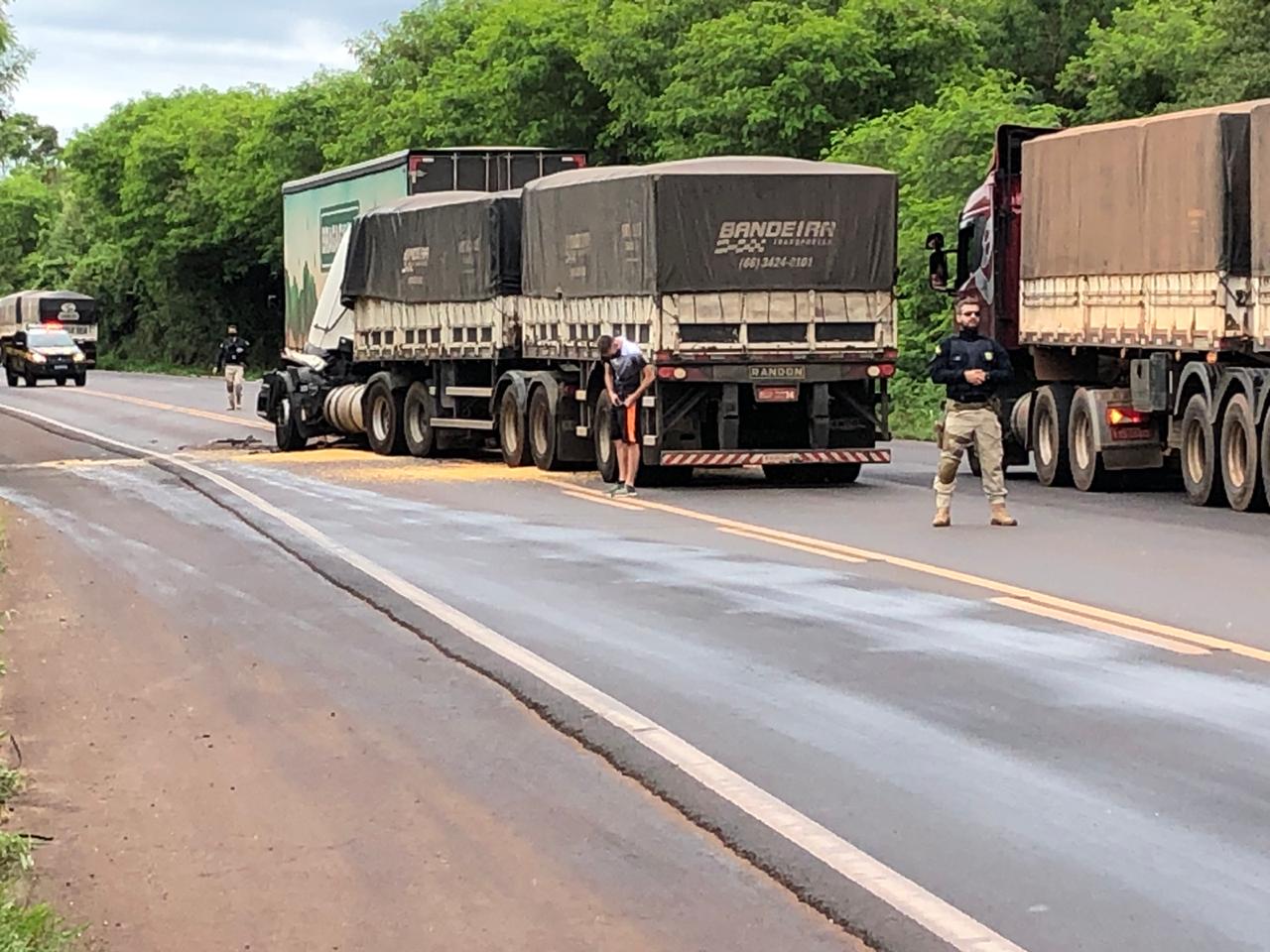 Colisão entre Carretas bloqueia parcialmente Br-163 próximo ao município de Mercedes: assista ao vídeo