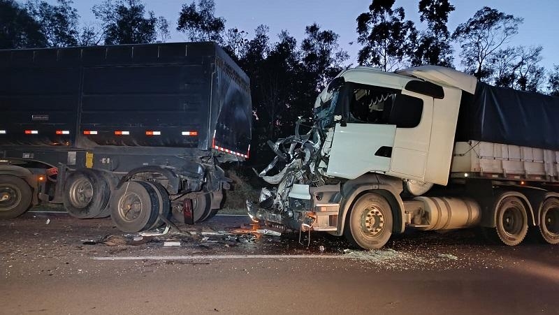 Colisão entre duas carretas deixa motorista ferido na BR-163 entre Toledo e Cascavel