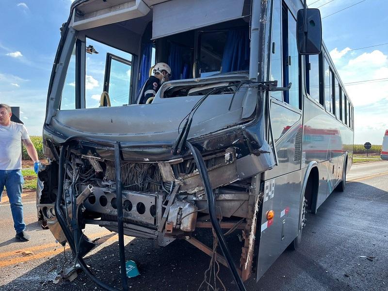 Acidente envolveu coletivo com trabalhadores e caminhão carregado de gado; três pessoas ficaram feridas, incluindo um idoso em estado grave