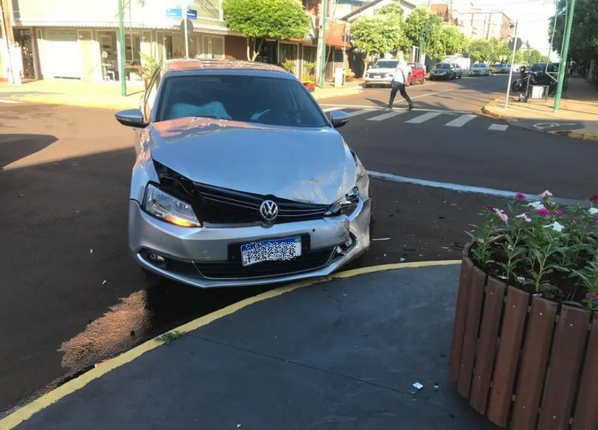 Um veiculo Volkswagen Jetta, emplacado em Toledo trafegava pela Tiradentes e acabou invadindo a preferencial, a Rua Santa Catarina, por onde trafegava um Ford Ka, veiculo de aplicativo.