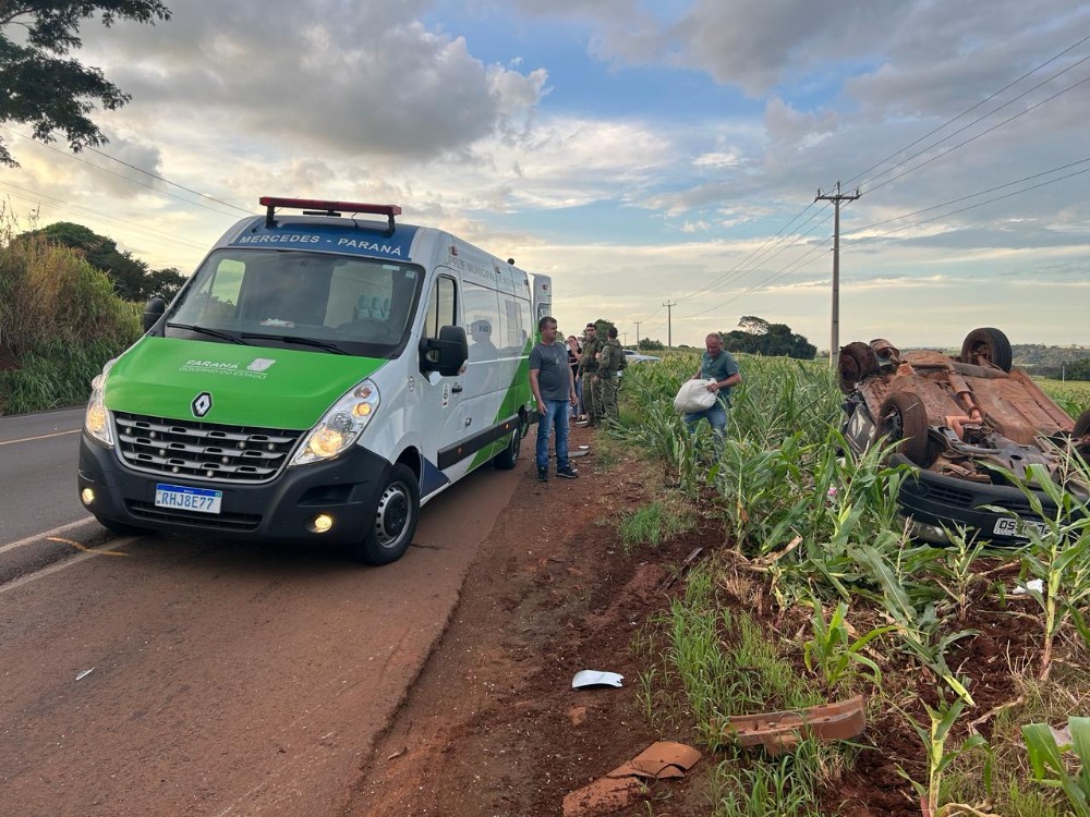 Uma colisão traseira seguida de capotamento foi registrada no final da tarde desta terça-feira (09), na BR-163, em Mercedes.
