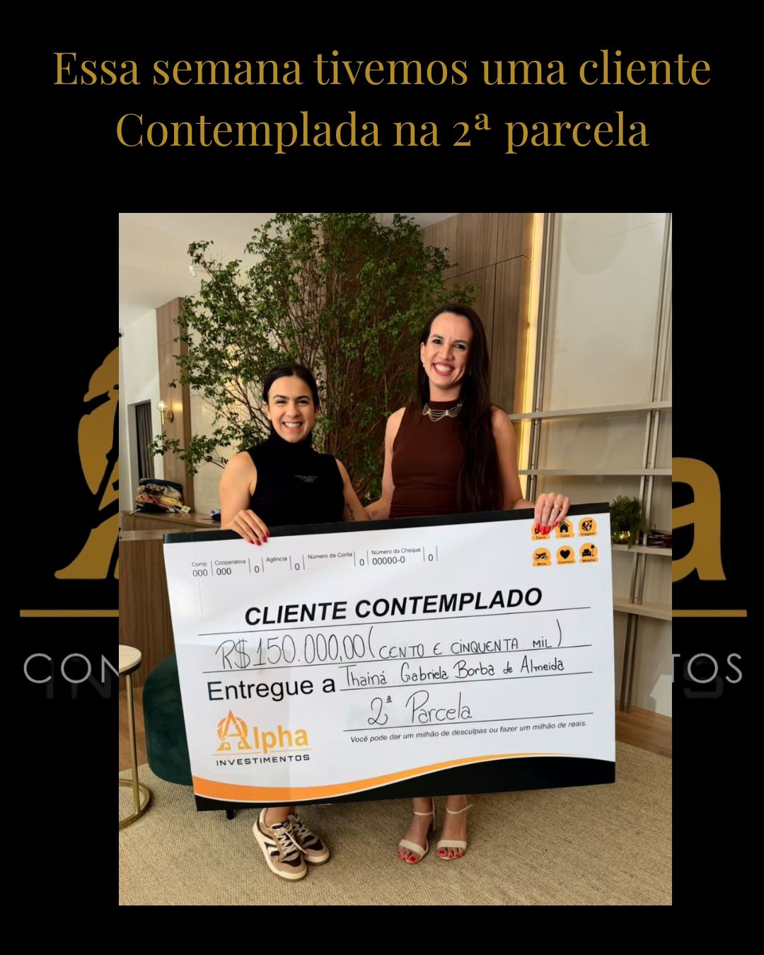 Na região, a Alpha Consórcios e Investimentos registrou recentemente novas contemplações que exemplificam o funcionamento do consórcio na prática. Nesta semana, uma cliente foi contemplada por sorteio na 2ª parcela, recebendo uma carta de crédito de R$ 150 mil. Outro caso é o da cliente Morgana, contemplada na 4ª parcela, com uma carta de crédito de R$ 100 mil. Já o cliente Rafael foi contemplado na 13ª parcela, recebendo R$ 103.181 em crédito imobiliário.