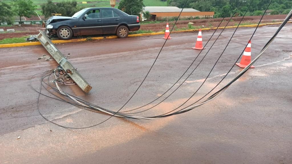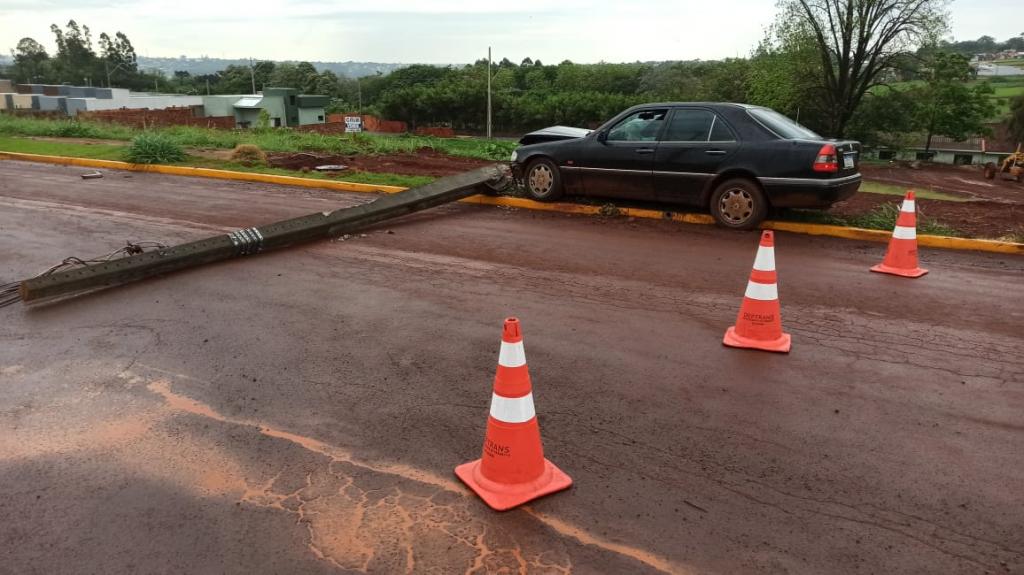 Um veículo Mercedes Benz C280 bateu contra um poste de energia, no bairro Jardim da Mata, em Toledo.