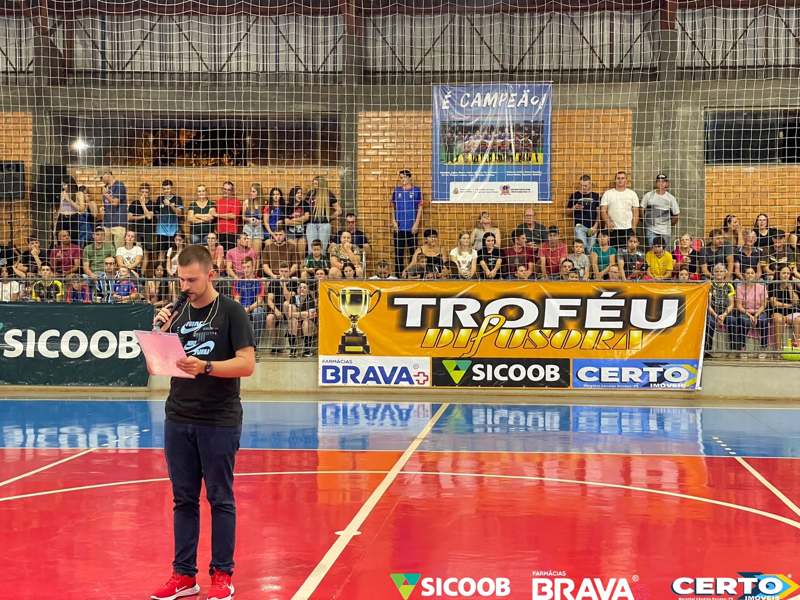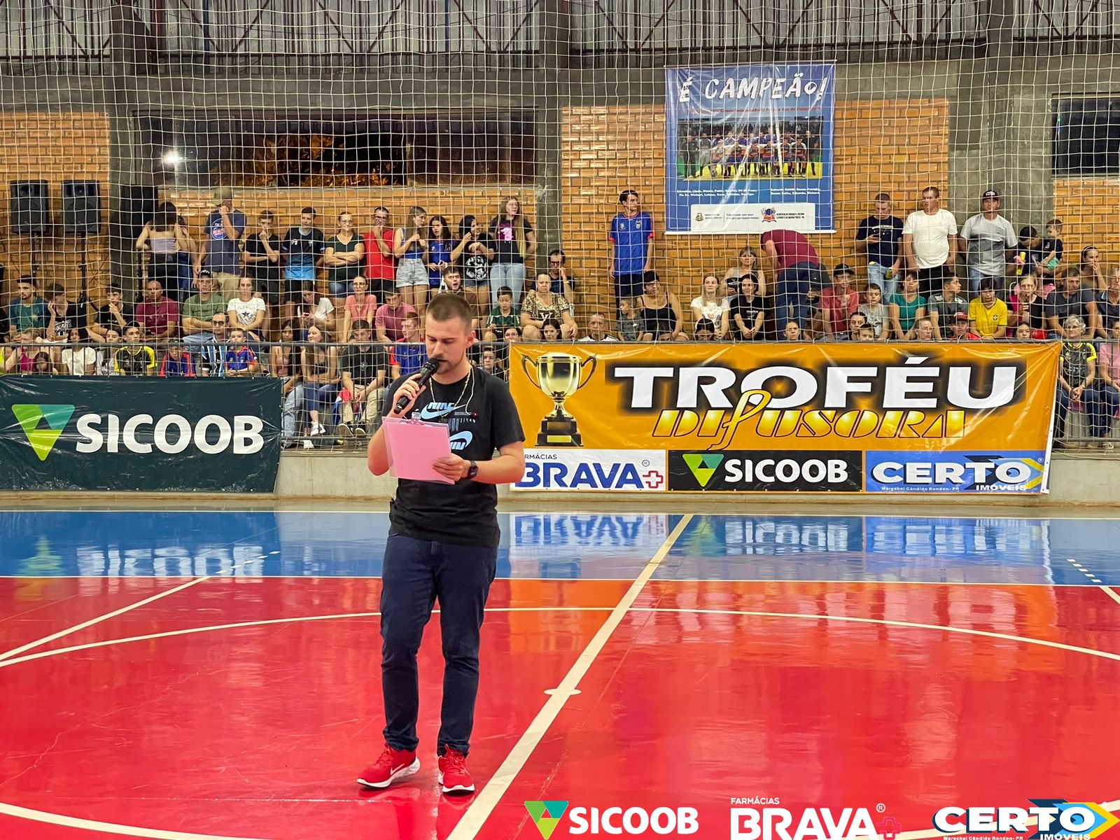 Na busca pelo tricampeonato, Quatro Pontes largou em vantagem na primeira rodada do Troféu Difusora / Sicoob / Certo Imóveis / Farmácias Brava de Futsal. Os anfitriões conquistaram uma vitória por 1 a 0 sobre Pato Bragado, nesta quinta-feira (2), no ginásio do Complexo Escolar de Quatro Pontes lotado de torcedores.