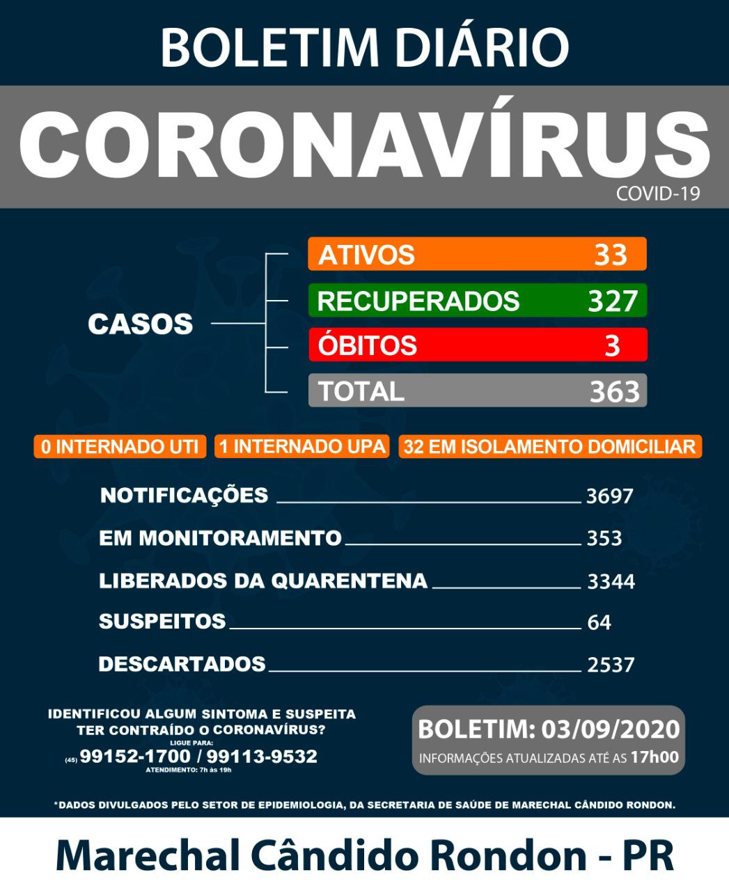 O município de Marechal Cândido Rondon recebeu na data de hoje (03) a confirmação do 3º óbito por coronavírus.