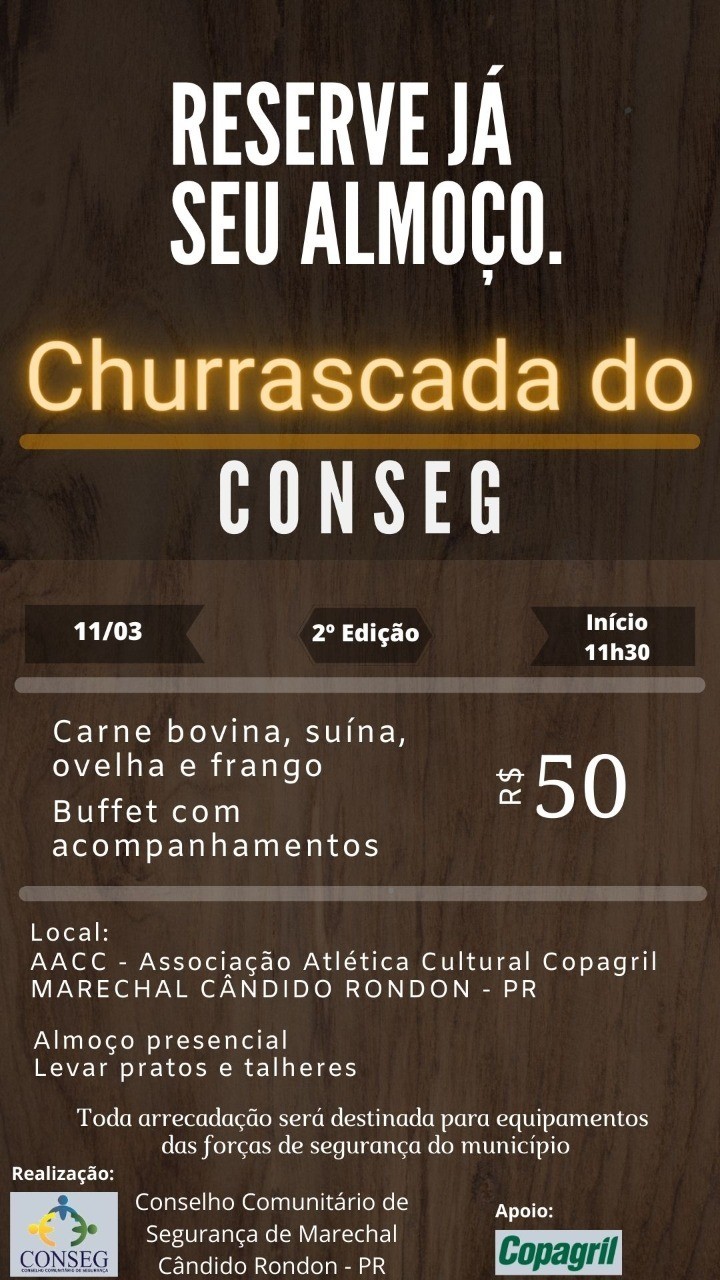 A diretoria do Conselho Comunitário de Segurança de Marechal Cândido Rondon – CONSEG – esteve reunido nesta quarta-feira (01) para definir detalhes da 2º Churrascada, que será realizada no dia 11 de março.
