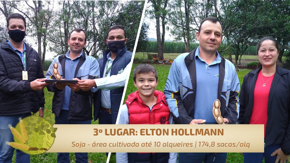 Em terceiro lugar : com 174,8 sacas por alqueire, Elton Hollamann, de Marechal Candido Rondon.