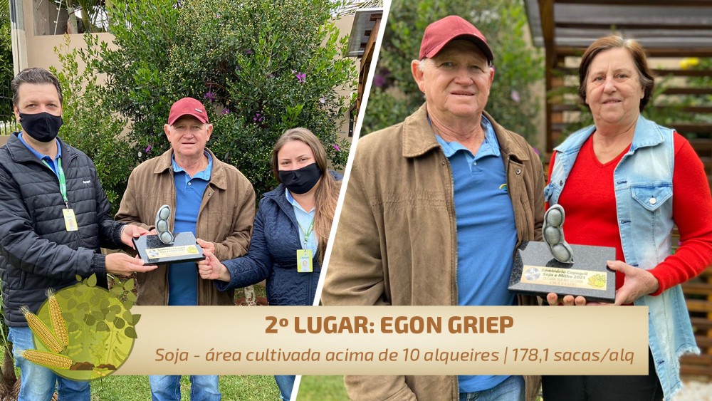 Em segundo lugar, com produtividade de 178,10 sacas por alqueire, Egon Griep, de Marechal Cândido Rondon;