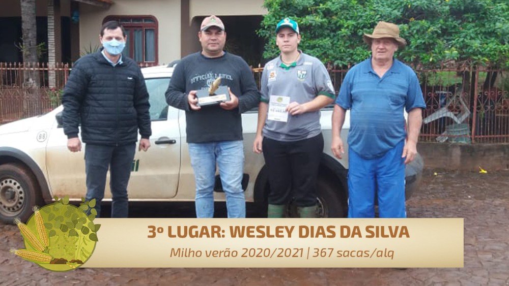 Terceiro lugar: com de 367 sacas por alqueire, Wesley Dias da Silva, do Distrito de Sub Sede, Santa Helena.