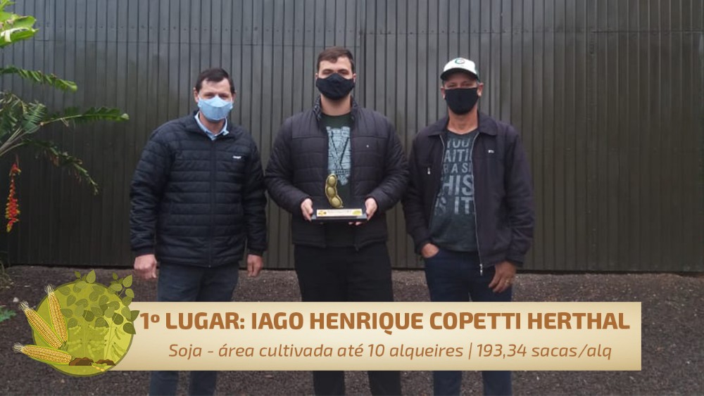 E em primeiro lugar: com produtividade de 193,34 sacas por alqueire, Iago Henrique Copetti Herthal, de Santa Helena.
