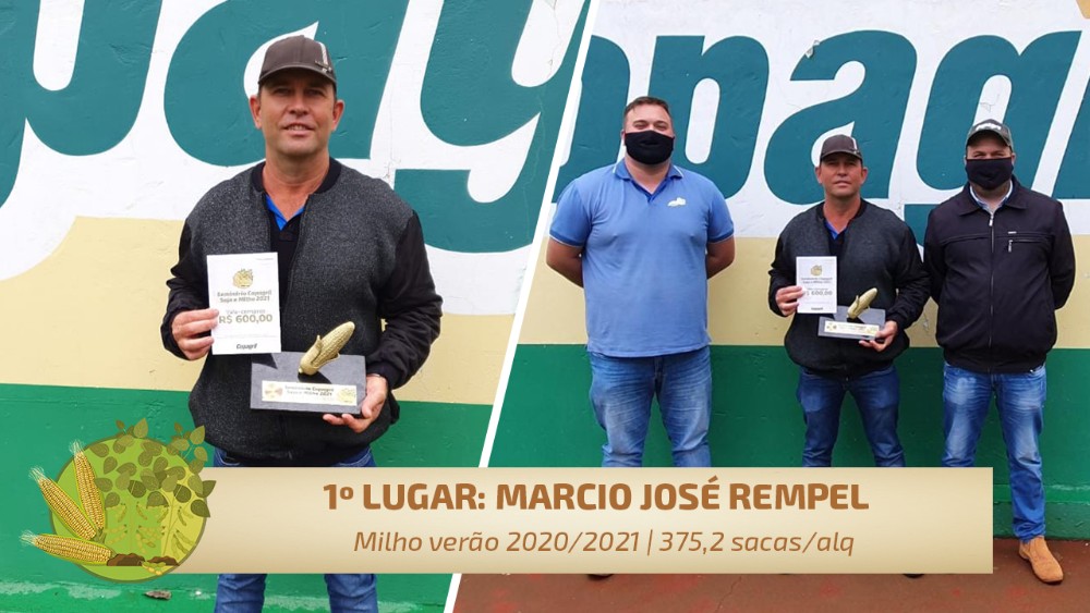 Em primeiro lugar, também é de Marechal Cândido Rondon, distrito de São Roque, Márcio José Rempel com 375,2 sacas por alqueire.