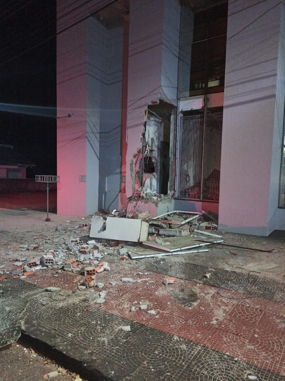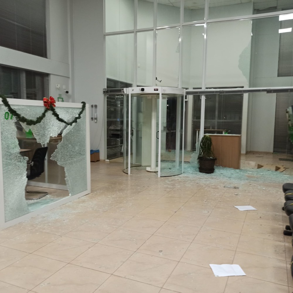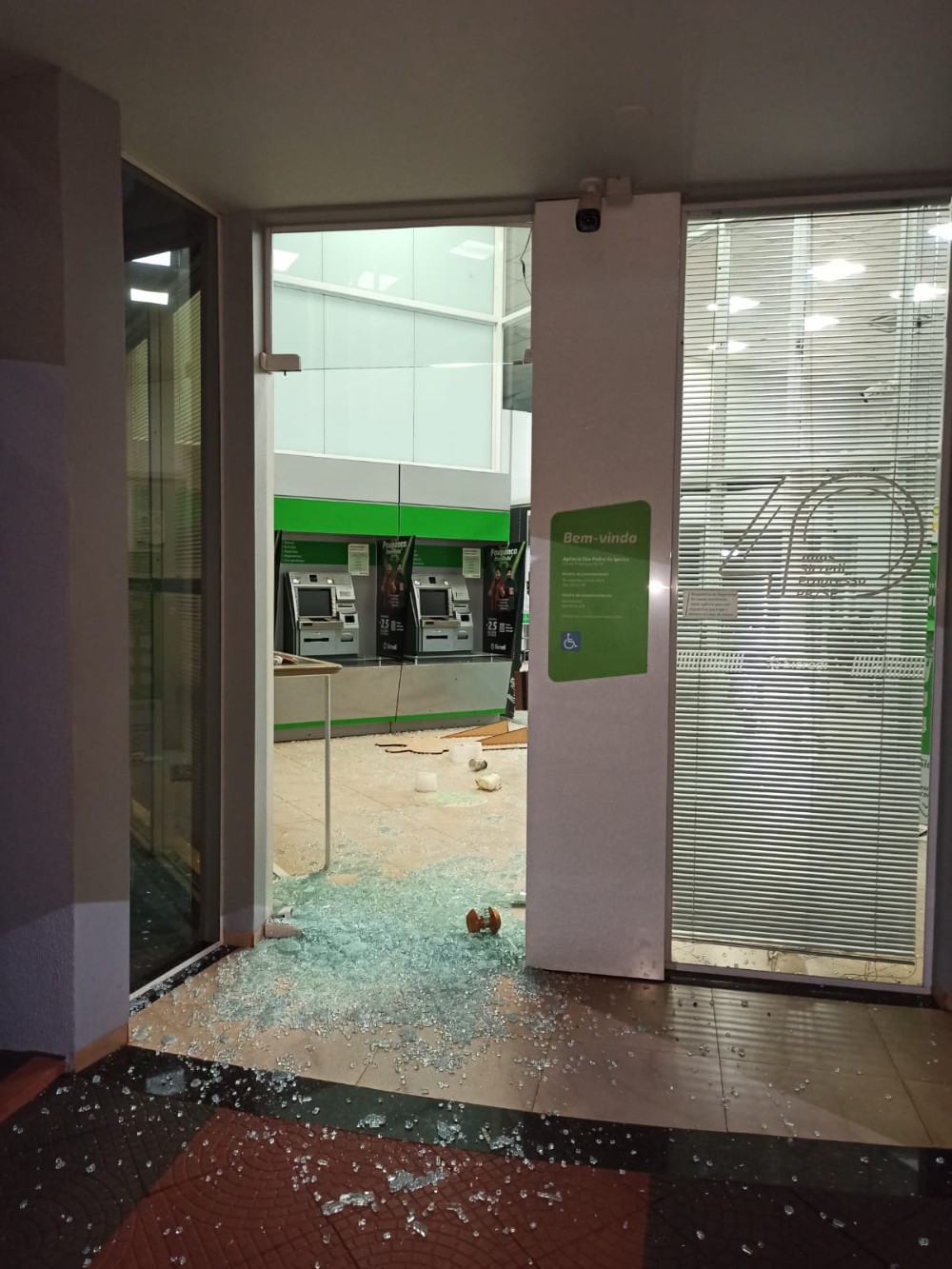 Houve a explosão de uma parede do banco e disparos por parte dos criminosos na via pública.