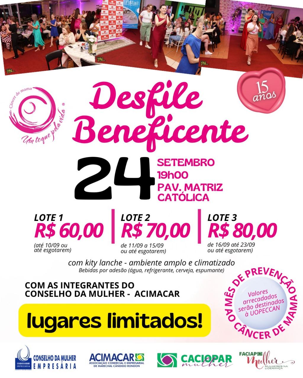Reforçando portanto, a Campanha Outubro Rosa “Um Toque Pela Vida” terá seu início na próxima quarta-feira, com o tradicional Desfile Beneficente, no pavilhão da Igreja Católica, em Marechal Cândido Rondon: fichas para participar com as integrantes do Conselho da Mulher Empresária da Acimacar.