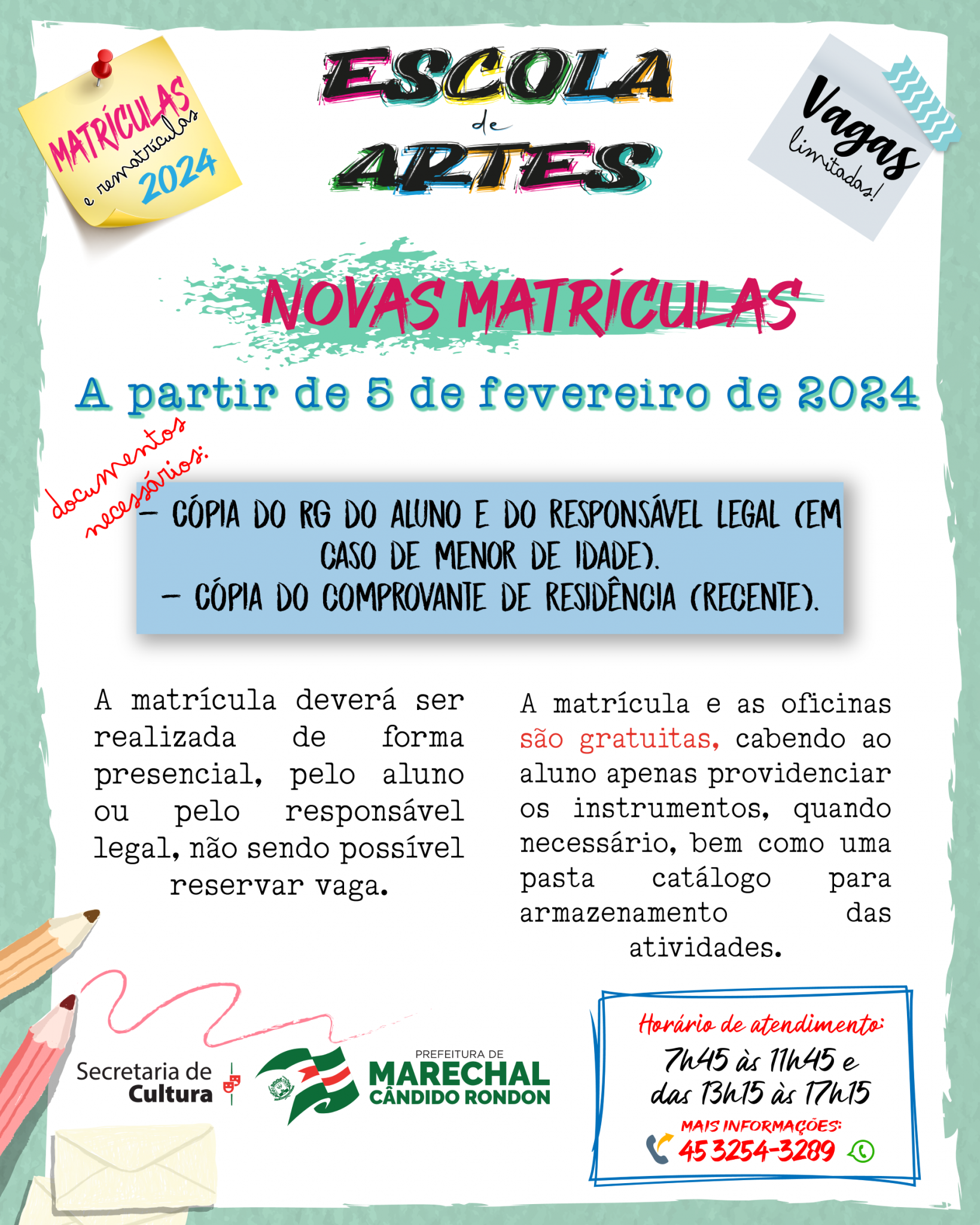 Junior Paulinho Niszcak, Secretário de Cultura de Marechal, repassa as informações sobre as matrículas e rematrículas da Escola de Artes para o ano de 2024.