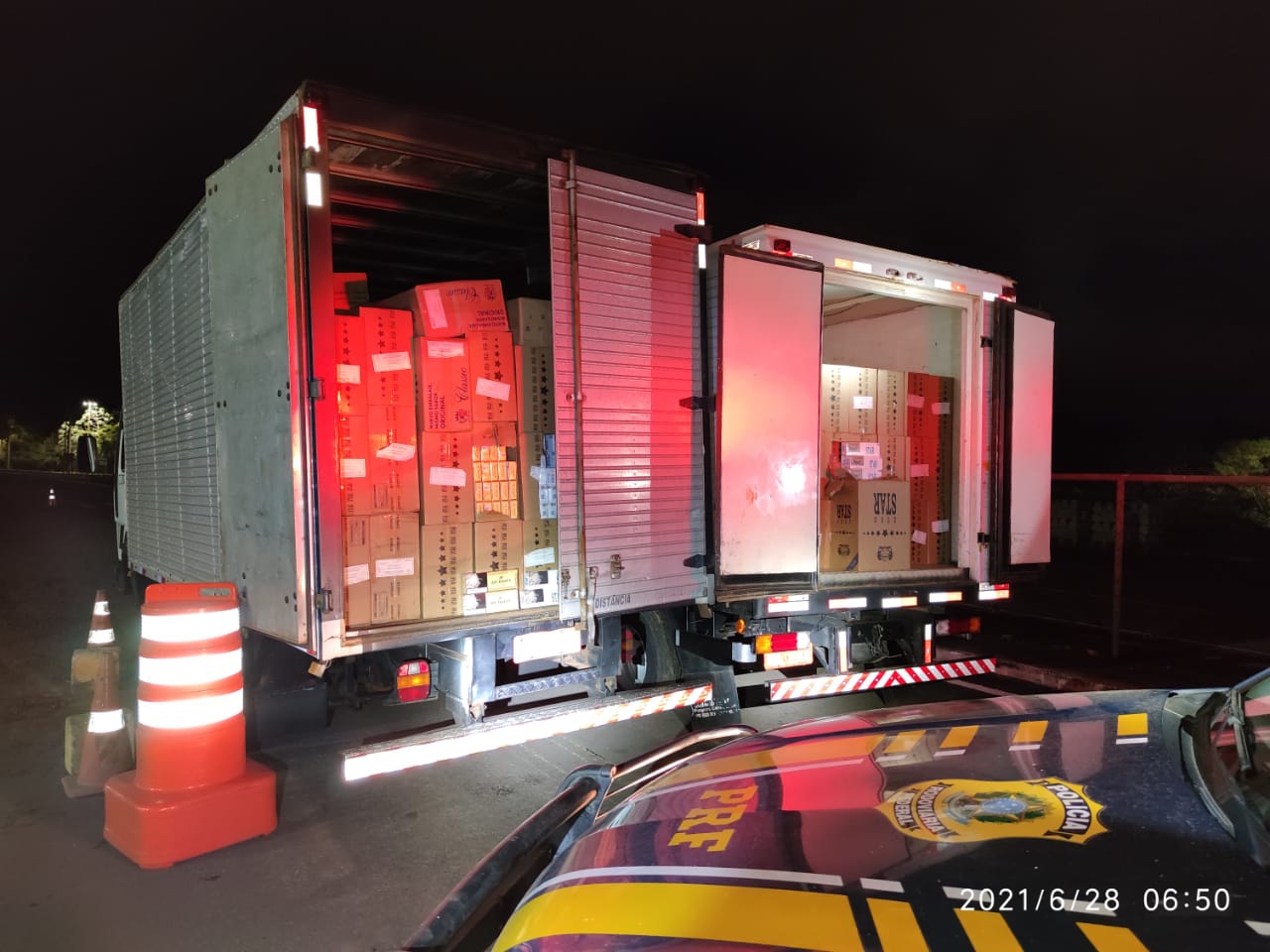 Na fria madrugada de hoje (28), a PRF apreendeu grande quantidade de cigarros contrabandeados, oriundos do Paraguai. Em ações quase simultâneas, duas equipes policiais abordaram dois caminhões-baú, sendo que um deles ainda tentou escapar, adentrando a cidade de Guaíra em alta velocidade antes de ser finalmente interceptado.
