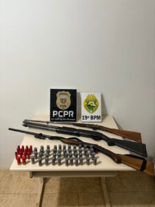 Durante as diligências foram apreendidas três espingardas (calibres 12, 32 e 36) e munições; em razão da posse de arma de fogo foi realizada prisão em flagrante, além da execução da prisão preventiva decretada pelo Poder Judiciário.