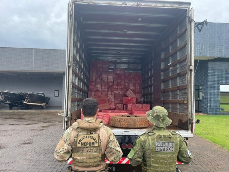 Uma operação conjunta da Polícia Federal (PF) e do Batalhão de Polícia de Fronteira (BPFRON) resultou na apreensão de uma embarcação de grande porte e um caminhão carregados com cigarros contrabandeados no Lago de Itaipu, em Guaíra.