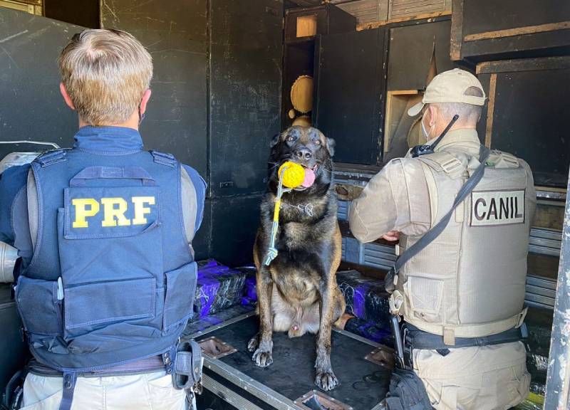 Conforme relatório da PRF, o condutor entrou em contradições nas informações dadas pelo motorista, sendo solicitado apoio do canil da Polícia Militar.