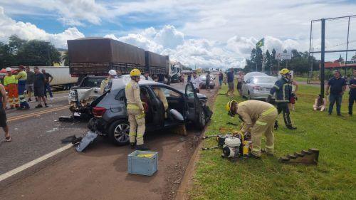Engavetamento com seis carros e carreta deixa feridos na BR-277, em Cascavel