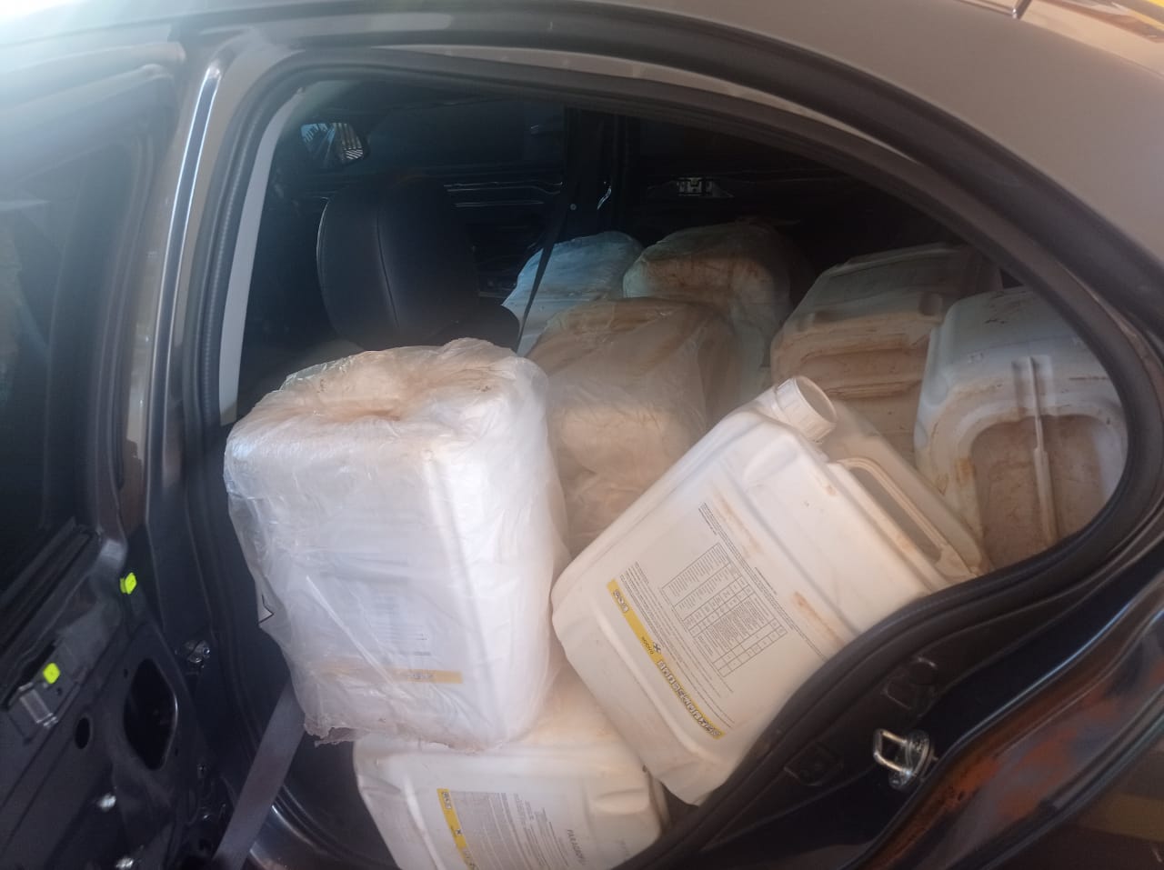 Ao realizar uma revista no interior do veículo constatou se que o mesmo estava carregado com aproximadamente 37 galões de 20l de herbicida das marcas G- QUAT e PARAQUAT, totalizando 740 litros de Agrotóxicos. Diante dos fatos o veículo e a mercadoria foram encaminhados a Delegacia de Polícia Civil de Santa Helena -PR para as providências cabíveis.